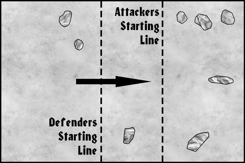 The Attacker’s Vehicles are deployed later – see the “Attacker’s Vehicles” rule below (Vehicles are too noisy to sneak up).