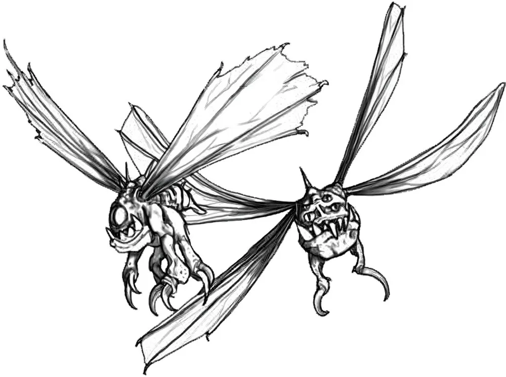 Closely related to Buzzer Squigs, Buzzin' Bugs are the bigger members of their family. They live in large hives and dislike the sentient folk who have a tendency to smoosh them. They fly all over Angelis looking for things to bring back to the hive… including Orks. Occasionally they will get caught in crossfire between mobs and descend upon their foes.