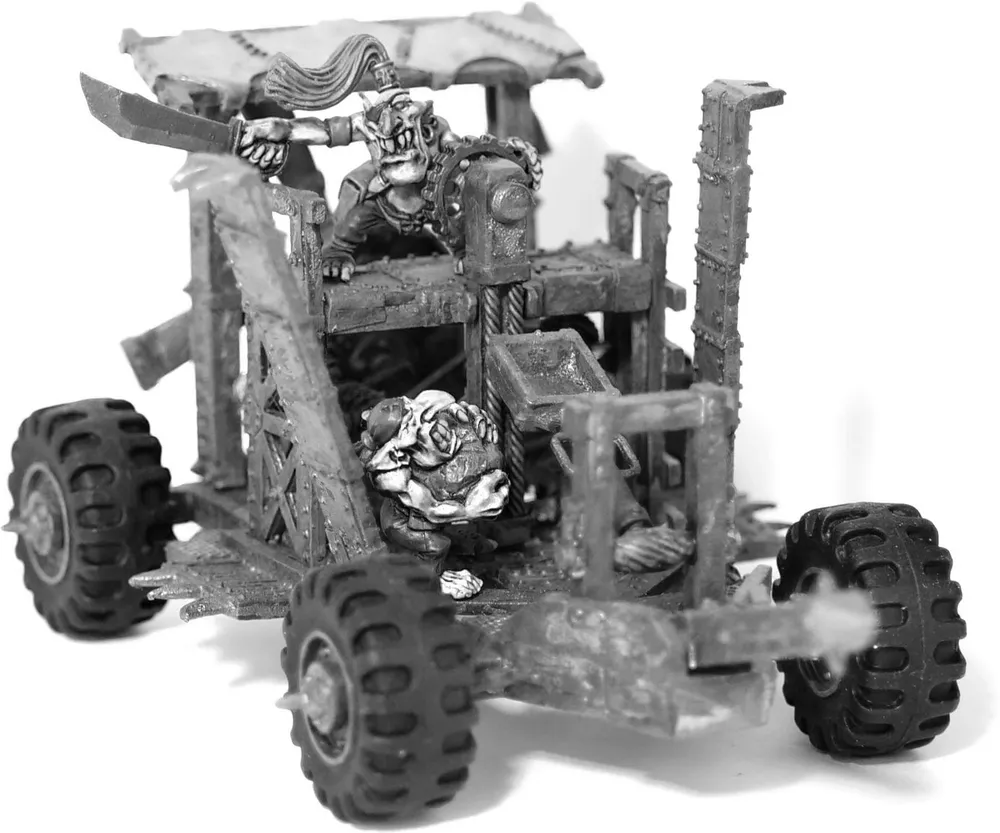 Movement: The Steel Gulpa will move towards the nearest Warrior with equipment, Vehicle, or piece of scrap (you can choose more things that it's attracted to if you wish!). Steel Gulpas amble along looking for something to munch and so do not run between their courses. If there is nothing with equipment left on the board, then it will start on the Warriors, which will count as Charge move (but their Movement isn't doubled like a normal Charge). This move is done before players' movement phases.
