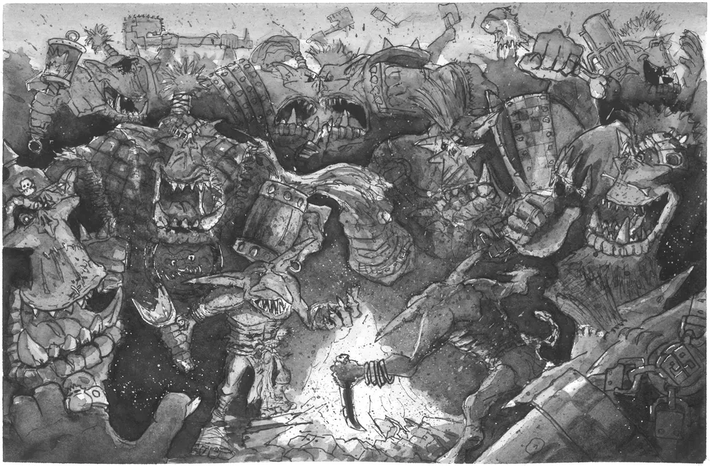 Many will be familiar with the tale of Angelis. Orks have space hulk. Orks crash Space Hulk. Orks build society on destroyed planet. Orks scavenge for scrap for the Mekboyz. Mekboyz build giant technological effigy to Mork/Gork to get them rescued. Orks disagree whether it’s Mork or Gork. Civil war ensues. It’s a tale as old as time.