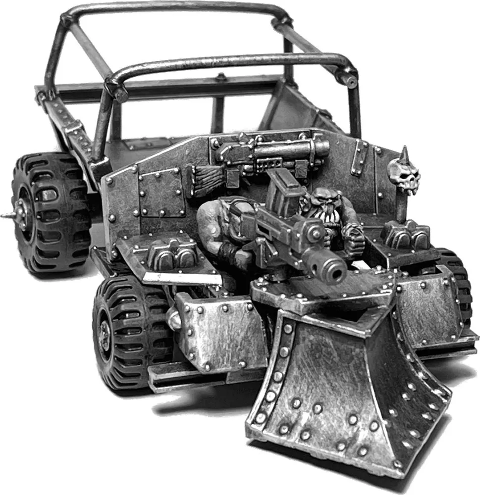 Mobs tend to have their forts, mines, hideouts etc. in isolated areas, in regions where the scrap has not yet been dug out and often well away from Mektown. While this means that they are generally able to find good quantities of scrap, it also means they have huge tracts of hostile land to haul their goods across before they can sell it. Less industrious mobs may decide it is easier to jump the convoy than dig for their own scrap, or raiders may also lay in wait with less financial motives at heart. This scenario starts with one such mob springing an ambush on a column of vehicles, charging in to grab what they can before the defenders can organise a defence or put the pedal to the metal!