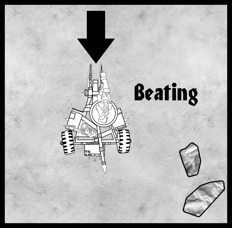 If you hit the Driver or Crew location you knock them off the Vehicle in addition to any other damage! The Crew member should be randomised as normal. They take a S3 Hit and are knocked D3” away from their Vehicle (in whatever direction seems most appropriate!).